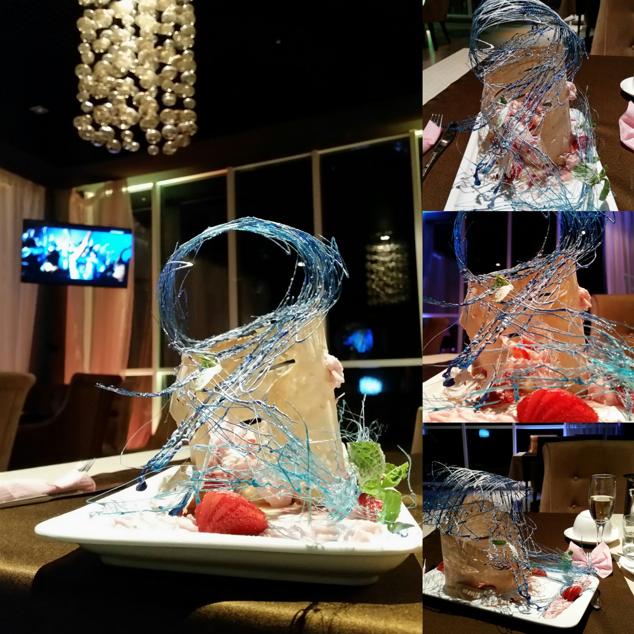 Десерт необычный, клубничный соус с тобаско)